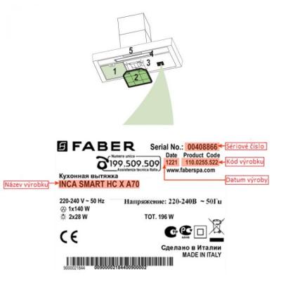Pro zaregistrování výrobku značky Faber vyplňte sériové číslo, které naleznete na štítku uvnitř digestoře, případně na spodní straně varné desky.